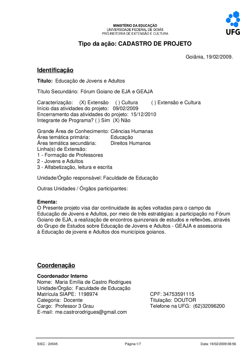 Formulário para elaboração de Relatório de Projeto – FINALGeovana Gomes23 de abril de 2024 Documento relatorio_forum_geaja_2006 Baixar Anexos projetogeaja_2009_2010 MetadadosTítuloFormulário para elaboração de Relatório de Projeto - FINALAssuntoEJA - Educação de jovens e adultosOutros assuntosGEAJAAno de PublicaçãoDécada de 2000 > 2006Tipo de documentoFormulário Item anteriorTipo da ação: CADASTRO DE PROJETO Próximo itemReunião Fórum Goiano EJA
